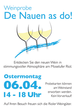 Eine vorherige Anmeldung ist nicht nötig - jeder kann spontan dabei sein. Der Verein für Kultur und Tourismus Riol e.V. freut sich auf viele Weingenießer!